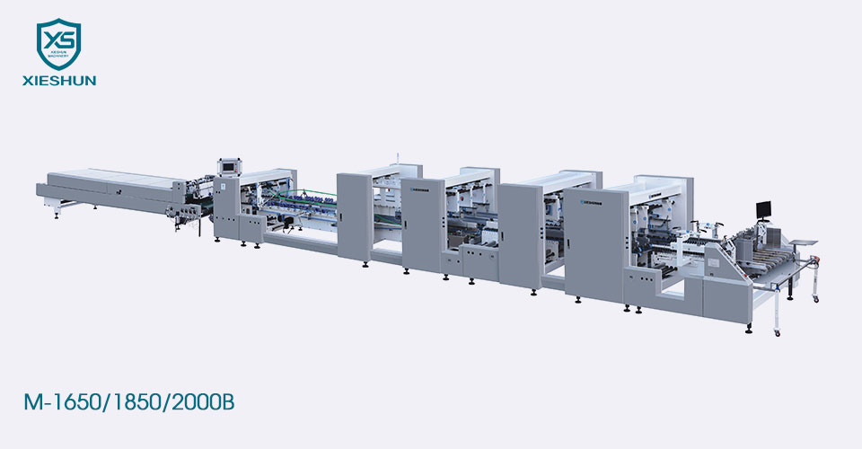 China Xieshun M-1650/1850/2000b Awtomatikong mabibigat na tungkulin na corrugated bottom lock folder gluer, gumamit ng PLC at na-import na mga elektronikong sangkap, feeder na may independiyenteng servo motor, interior plate ay inilipat gamit ang mga gabay na gabay upang matiyak ang katumpakan at kadalian ng operasyon.